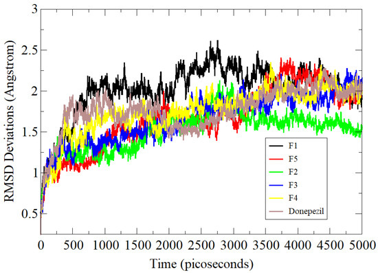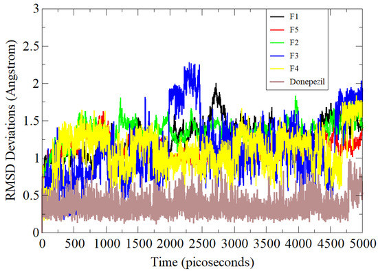 | Donepezil | 4.91 ± 0.51 | −55.91 | −54.51 | 3.98 ± 0.67 | −40.17 | −43.14 |