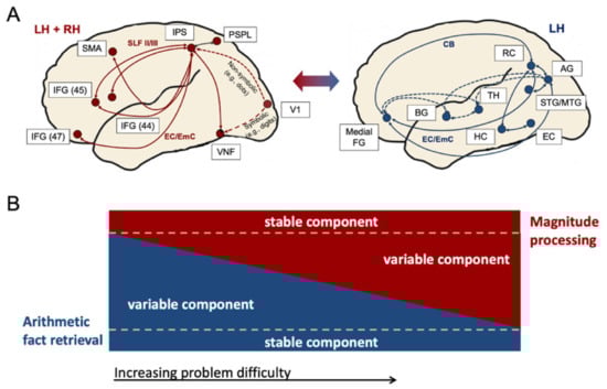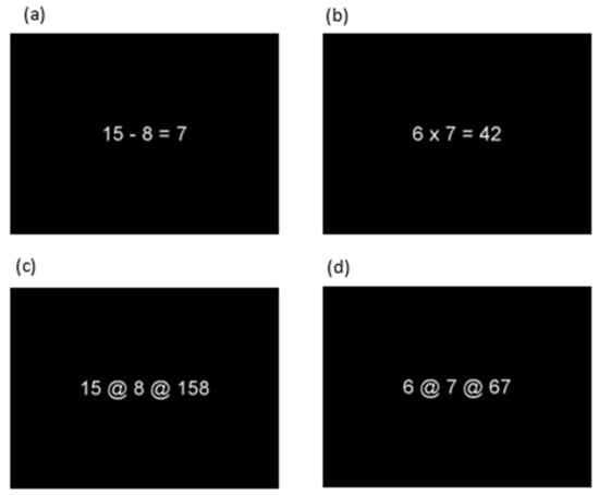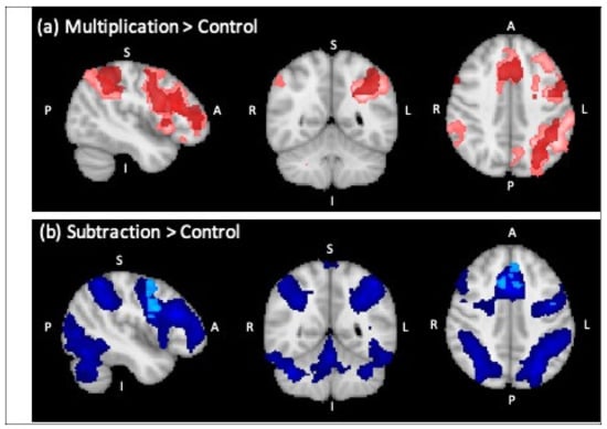 - Lee, K.M. Cortical Areas Differentially Involved in Multiplication and Subtraction: A Functional Magnetic Resonance Imaging Study and Correlation with a Case of Selective Acalculia. Ann. Neurol. 2000, 48, 657–661. [Google Scholar] [CrossRef]