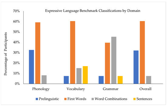 Expressive Language Benchmarks as a Function of Language Domain. Note. Phonology domain sample size = 49 (due to incomplete GFTA-3 administrations or examiner error). Overall ELB classifications were not impacted by the missing GFTA-3 scores.