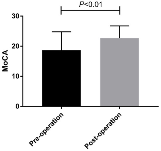 Comparison of details of MoCA score between preoperative and postoperative one year. ** p < 0.01.