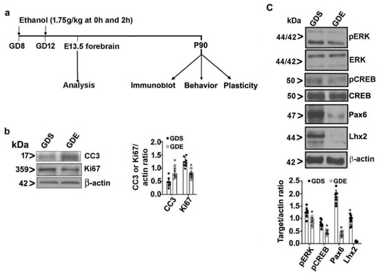 - Kim, K.C.; Go, H.S.; Bak, H.R.; Choi, C.S.; Choi, I.; Kim, P.; Han, S.H.; Han, S.M.; Shin, C.Y.; Ko, K.H. Prenatal exposure of ethanol induces increased glutamatergic neuronal differentiation of neural progenitor cells. J. Biomed. Sci. 2010, 17, 85. [Google Scholar] [CrossRef] [PubMed]