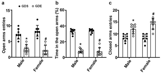 3.6. Effects of GDE Exposure on Anxiety-like Behavior in EPM