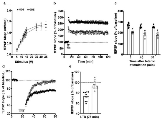 3.7. Effects of GDE Treatment on LTP and LTD