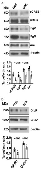 3.8. Effects of GDE on Synaptic Plasticity-Related Protein Expression in Adult Mice