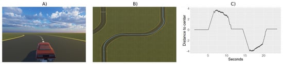 The game has been created using the Unity 3D tool [57]. A circuit was built using a road construction plugin called EasyRoad3D [58]. The circuit, designed to be completed in 11.5 min, contains a total of 58 curves and 58 straights. All curved and straight road sections are equal. All curves are 90 degrees. The car could not leave the track and remained on the edge of the road if there was no user intervention.