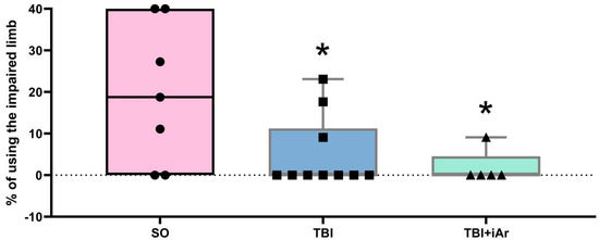 - Experimental group with TBI + 70%Ar/O230% inhalation (TBI + iAr group), n = 14.