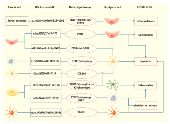 4.2. Exosomal Circular RNAs in the Process of Ischemic Stroke