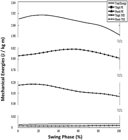Time was normalized according to percent of swing phase. All energy components were then normalized by the body mass and leg length for inter-subject comparison [].