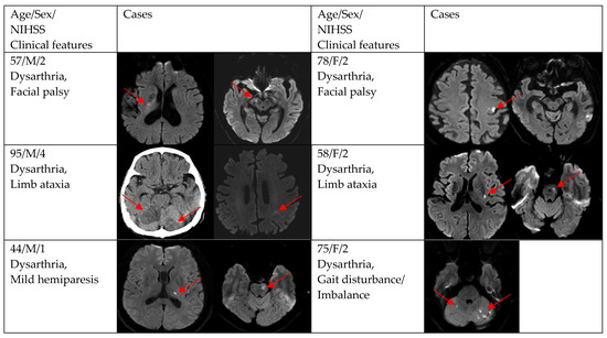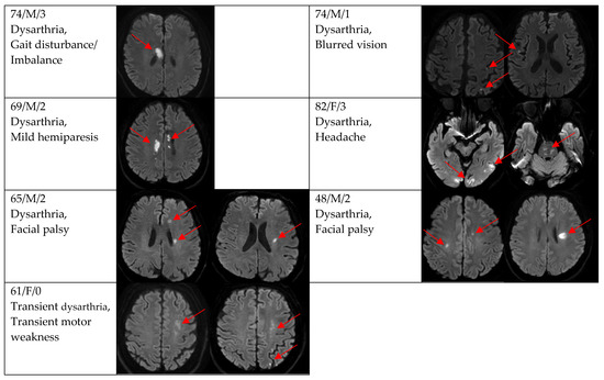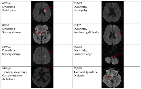 - Arboix, A.; Bell, Y.; García-Eroles, L.; Massons, J.; Comes, E.; Balcells, M.; Targa, C. Clinical Study of 35 Patients With Dysarthria-Clumsy Hand Syndrome. J. Neurol. Neurosurg. Psychiatry 2004, 75, 231–234. [Google Scholar] [PubMed]