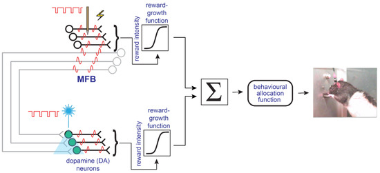 - Gallistel, C.R. Self-Stimulation in the Rat: Quantitative Characteristics of the Reward Pathway. J. Comp. Physiol. Psychol. 1978, 92, 977–998. [Google Scholar] [CrossRef]