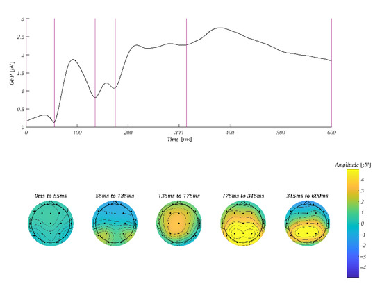 - Skrandies, W. Global field power and topographic similarity. Brain Topogr. 1990, 3, 137–141. [Google Scholar] [CrossRef]