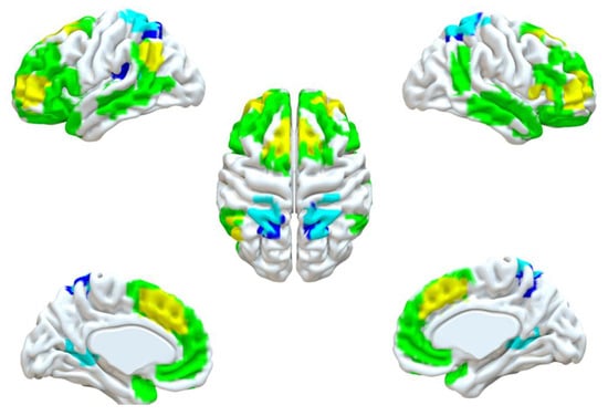 - Yan, C.-G.; Wang, X.-D.; Zuo, X.-N.; Zang, Y.-F. DPABI: Data Processing & Analysis for (Resting-State) Brain Imaging. Neuroinform 2016, 14, 339–351. [Google Scholar] [CrossRef]