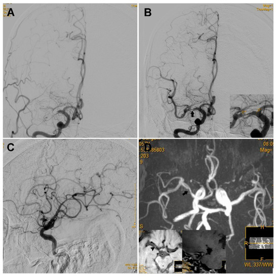 The degree of stenosis was measured by the Warfarin–Aspirin Symptomatic Intracranial Disease Study (WASID) method. The degree of stenosis was classified as mild to moderate (<70%) or high (70–99%) [14].