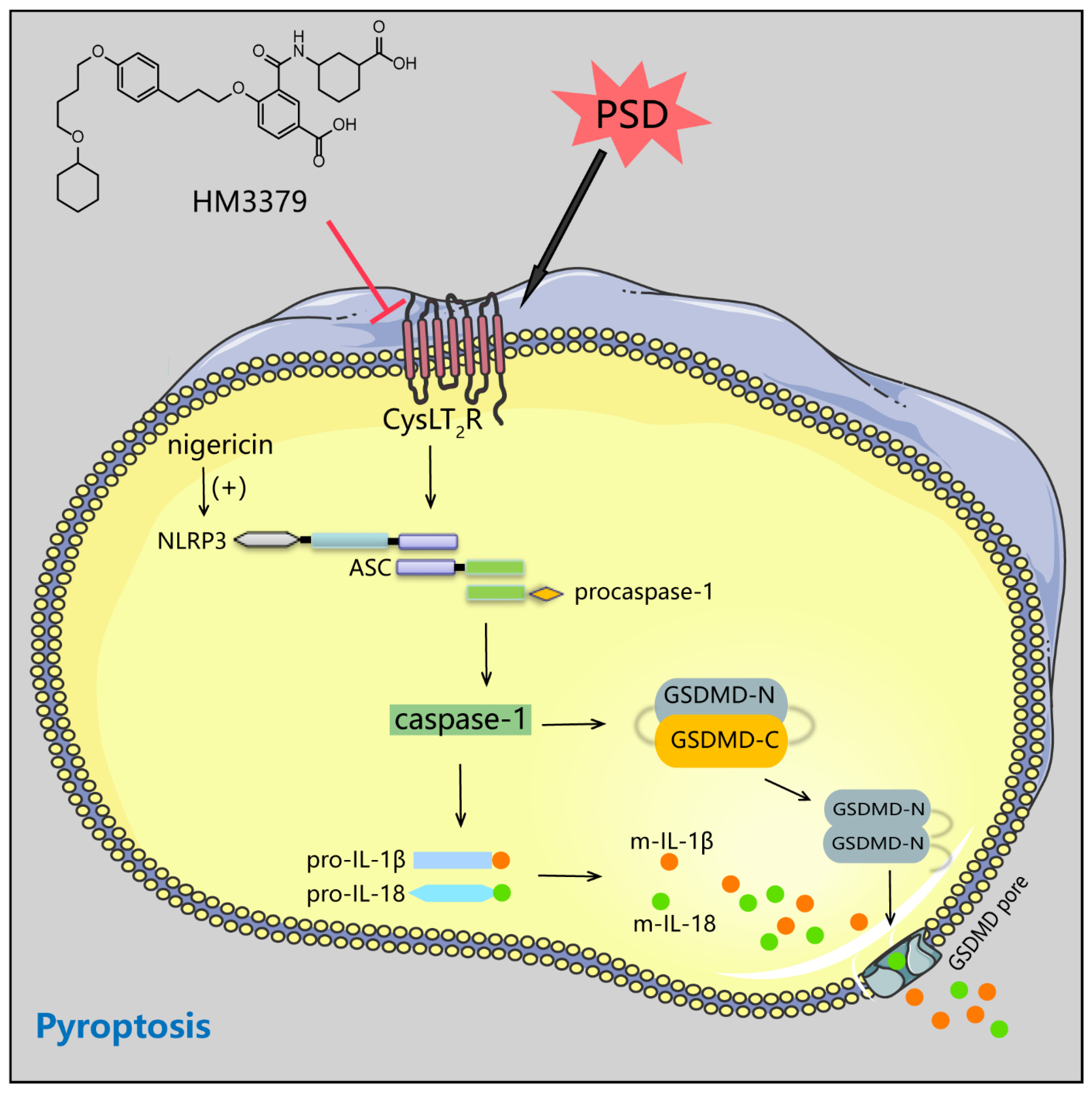 3.3. HM3379 Blocked PSD-Induced Activation of the NLRP3 Inflammasome and Pyroptosis in Gerbils