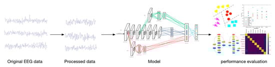 Deep learning methods have been widely used in recent years because of their ability to directly extract features in a step-by-step manner from complex data, without the need for any prior knowledge or manual feature extraction [10]. Deep learning has been applied effectively in different fields, such as image classification [11] and speech recognition [12]. The inputs for training deep networks typically fall into three categories: calculated features, images, and signal values. Feature input to EEG is often analyzed in the time–frequency domain [13]. The powers of high-alpha, high-beta, and low-beta bands, as well as low-alpha and theta waves, were shown to be significant biomarkers [14,15,16,17]. Many convolutional neural networks (CNNs) use spectrograms generated from EEG data as inputs. When signal values are used as inputs, neural networks are expected to automatically learn complex features from large amounts of data. Some researchers have applied deep learning models to EEG classification and obtained acceptable results [18,19]. Hosseini et al. [20] developed and extended a CNN structure based on principal component analysis, independent component analysis, and the differential search algorithm. They reduced the number of calculations in a baseline epilepsy dataset using this structure to extract and classify unsupervised features of big data. Meanwhile, Lan et al. [20] used a CNN to extract the features of neurological signals and classify EEG data for the resting state under open- and closed-eye conditions. Their results showed that an EEG-based biometric recognition system using a CNN can achieve high accuracy for a 10-level classification (88%). Rajendra et al. [21] employed a 13-layer deep CNN algorithm to detect the normal, preictal, and seizure classes using EEG signals. Their proposed technique exhibited an accuracy, specificity, and sensitivity of 88.67%, 90.00%, and 95.00%, respectively. Nihal et al. [22] proposed a model combining an Elman recurrent neural network (RNN) and Lyapunov exponents. Their model was used to classify the EEG signals of normal and epileptic patients, and nonlinear dynamic tools were used to calculate the Lyapunov exponent. Overall, these methods showed good classification power. On this basis, we proposed a new model and investigated the impact of high-dimensional samples and the number of layers on the performance of the model.