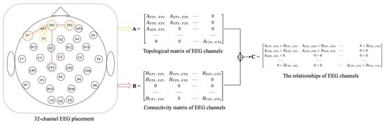 Our method based on the combination of distance and functional connectivity among EEG channels is proposed to construct adjacency matrix C by adding Equations (7) and (9) to perform matrix fusion. The adjacency matrix C is based on the fusion of local and global connectivity.