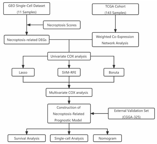 Tumors can escape from immune surveillance, which includes the loss of programmed apoptosis [7]. Therefore, the inducing of programmed apoptosis in tumor cells is an important treatment for tumors. Targeting NCPS is considered a prospective cancer treatment strategy. Programmed cell death participated in homeostatic regulation, inflammatory response, anti-infective, and carcinogenic, which includes apoptosis, cell scorch, NCPS, and iron death [8,9,10]. Since the discovery of NCPS by HITOMI et al. in 2008 [11], the underlying mechanisms have been elucidated as research progresses [12]. Further exploration of NCPS has contributed to a new understanding of the composition of programmed cell death. It is mechanistically similar to apoptosis and morphologically similar to necrosis. It is mediated by activated receptor-interacting protein kinase 1 (RIPK1), RIPK3, and mixed-spectrum kinase domain-like (MLKL) [13]. Previous studies find NCPS associated with several tumor types and their immune microenvironment [14]. At present, research on NCPS in neurological disorders has focused on non-neoplastic diseases, such as cerebral ischemia [15], traumatic brain injury [16], and Alzheimer’s disease [17]. Previous researchers have shown that Alzheimer’s disease can be alleviated by overexpression of the core molecule of NCPS, MLKL [17]. Damage caused by cerebral ischemia can be reduced by inhibitors of NCPS [15]. However, its relationship with GBM is not yet clear. Thus, it is of great significance to explore the role of NCPS in GBM.