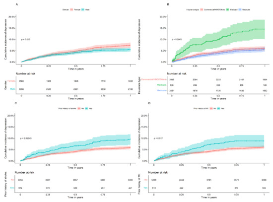 - Hamano, T.; Li, X.; Lönn, S.L.; Nabika, T.; Shiwaku, K.; Sundquist, J.; Sundquist, K. Depression, Stroke and Gender: Evidence of a Stronger Association in Men. J. Neurol. Neurosurg. Psychiatry 2014, 86, 319–323. [Google Scholar] [CrossRef]