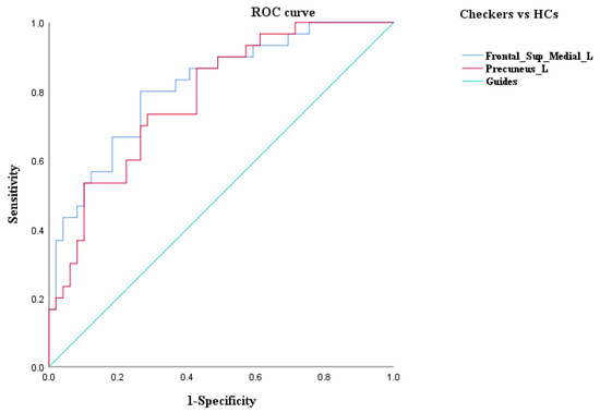 ROC curve analysis of ReHo differential brain regions between the checking group and HCs.