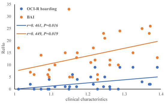 Bias correlation analysis between the left precuneus ReHo values and the OCI-R hoarding dimension and BAI.