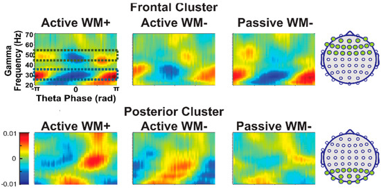 - Park, J.Y.; Jhung, K.; Lee, J.; An, S.K. Theta–Gamma Coupling during a Working Memory Task as Compared to a Simple Vigilance Task. Neurosci. Lett. 2013, 532, 39–43. [Google Scholar] [CrossRef]