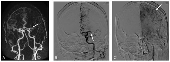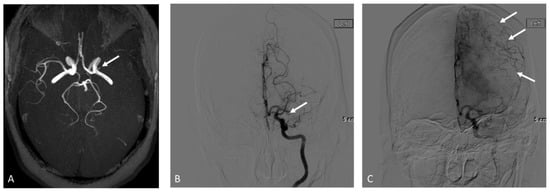 - Boujan, T.; Neuberger, U.; Pfaff, J.; Nagel, S.; Herweh, C.; Bendszus, M.; Möhlenbruch, M. Value of Contrast-Enhanced MRA versus Time-of-Flight MRA in Acute Ischemic Stroke MRI. AJNR Am. J. Neuroradiol. 2018, 39, 1710–1716. [Google Scholar] [CrossRef]
