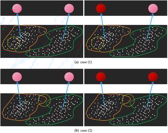 After the memory generation stage of the NMIS, the IPNs corresponding to the training instances are transformed into EPNs and can be easily activated again. If a new IPN is activated by an external stimulation from a test instance, some EPNs within its cognitive scale will be activated through its interactive stimulation and the unrelated EPNs will be inhibited. So, the cognitive scale of PN plays an important role in NMIS, which is determined by the interactive stimulation scale and . Next, we offer a calculation method for the interactive stimulation scale using the distribution information of the instances.