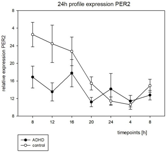 Dück, A.; Reis, O.; Wagner, H.; Wunsch, K.; Häßler, F.; Kölch, M.; Astiz, M.; Thome, J.; Berger, C.; Oster, H. Clock Genes Profiles as Diagnostic Tool in (Childhood) ADHD—A Pilot Study. Brain Sci. 2022, 12, 1198. https://doi.org/10.3390/brainsci12091198