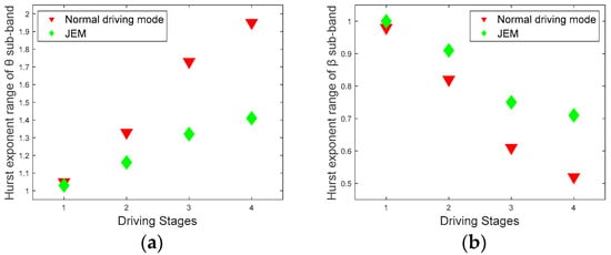 Hurst exponent. (a) Hurst exponent of the β sub-band in Normal driving mode; (b) Hurst exponent of the β sub-band in JEM.