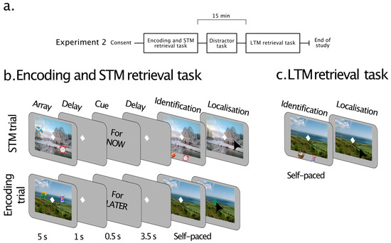 Similar to Experiment 1, this study consisted of two stages (Figure 4a). Participants reported the identity and location of objects associated with scenes based on their short-term or long-term memories of those associations, respectively (Figure 4).