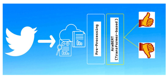 Figure 7 shows the big picture of this research, where the Twitter datasets have been simulated after preprocessing (as mentioned in Table 1) by CNN, RNN, and AraBERT for the given task.