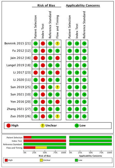 Figure 2. Quality of the 11 included studies that provided diagnostic performance of rPS, rCBF, or rCBV.