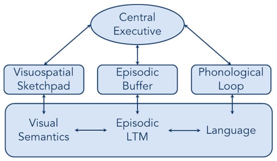 - Baddeley, A.D.; Hitch, G.J.; Allen, A. A multicomponent model of working memory. In Working Memory: The State of the Science; Logie, R., Camos, V., Cowan, N., Eds.; Oxford University Press: Oxford, UK, 2021. [Google Scholar]