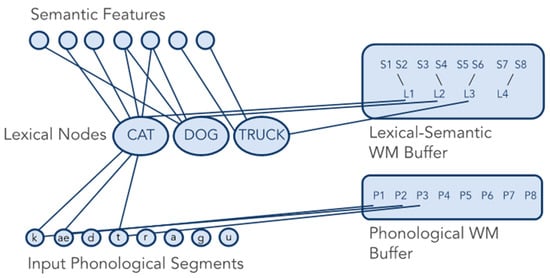 The domain-specific model of WM (the orthographic buffer included in the full version of the model is not pictured here).