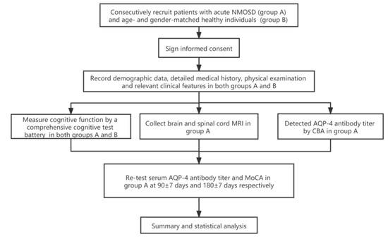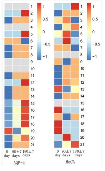 Demographic data, including gender, age and years of education were collected. Detailed medical history, physical examination and relevant clinical features were recorded. Routine laboratory tests, including thyroid function, were measured. Serum AQP-4 antibody titer was detected by a cytometric bead array (CBA) as described previously [19]. Follow-up (90 ± 7 days and 180 ± 7 days after enrollment) was conducted and serum AQP-4 antibody titer and MoCA were re-tested.