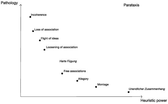 It is clear that what linguists call ‘parataxis’ is not far removed from what psychopathologists call ‘loss of associations’. If there is not a complete shared identity between these two phenomena, it should be noted at least that there is a close similarity. Some might argue that the main difference lies in the fact that, while parataxis is voluntarily sought, especially in the sphere of literature, the loss of associations is seen as a phenomenon that occurs against the person’s will.