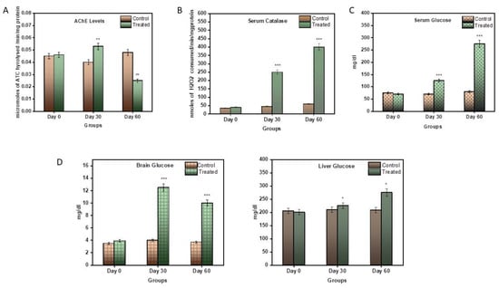 Wistar rats were sacrificed using cervical dislocation under the effect of anaesthesia in an ethical way. The subjects were dissected and their brains, livers, intestines, and kidneys were washed in cold saline (0.1 M, pH 7.4), and the tissue was stored at −80 °C. Some parts of the tissue were stored in formalin for histopathological analysis and some in 0.1 M PBS of pH 7.4 for biochemical analysis. Serum samples of the control and the diseased groups were also stored for further use.