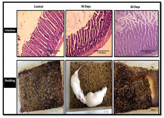 Wistar rats were sacrificed, and their brains, livers and intestines were quickly removed and preserved in buffered 10% formalin for histopathological studies. The tissues were embedded in paraffin wax, and later, blocks were sectioned into 4 µm thick slides. The sections were stained with Haematoxylin (H) and Eosin (E). The photomicrographs of slides were examined under an Olympus CKX41SF inverted microscope system (Olympus Corporation, Tokyo, Japan).