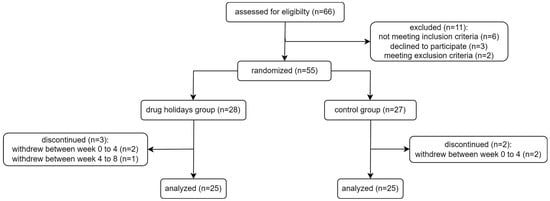 | Drug Holidays’ Group (N = 25) | Control Group (N = 25) | |||||