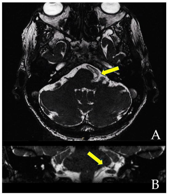 - Miller, J.P.; Acar, F.; Hamilton, B.E.; Burchiel, K.J. Radiographic evaluation of trigeminal neurovascular compression in patients with and without trigeminal neuralgia. J. Neurosurg. 2009, 110, 627–632. [Google Scholar] [CrossRef] [PubMed]