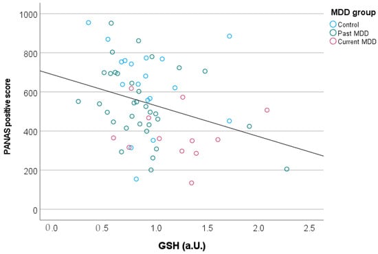 Elevated prefrontal GSH levels were associated with reduced PANAS-positive scores, reflecting a loss of positive mood in participants with higher GSH concentrations.