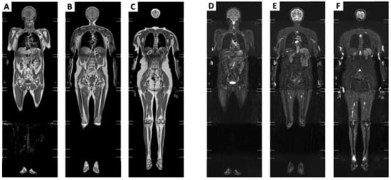 - Lecouvet, F.E. Whole-Body MR Imaging: Musculoskeletal Applications. Radiology 2016, 279, 345–365. [Google Scholar] [CrossRef]