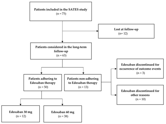 In the present study, we included all patients previously enrolled in the SATES study for whom we received informed consent, from the patient or from his/her legal representative, to participate in the long-term follow-up. Exclusion criteria included the refusal to participate in the study and inability to obtain recent information on the patient’s clinical status and/or edoxaban intake.