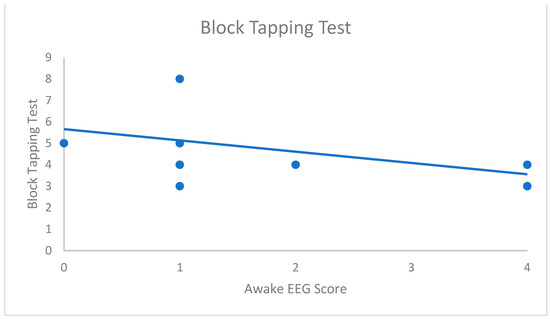 Significant association between the Block Tapping Test and the awake qualitative EEG score. (rs = −0.727; pcorr < 0.05).