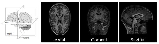 Axial, sagittal, and coronal planes used in sMRI modalities.
