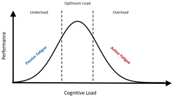 Fatigue can be subdivided into two categories: active and passive fatigue. Active fatigue stems from both cognitive and motor overload of extended task-related events, while passive fatigue stems from cognitive and motor underload over extended periods of time (Figure 5). The consequences of active fatigue are often seen in a decline in physical or cognitive performance with extended reaction times in tasks. In stroke patients executing MI for prolonged periods, they too become actively fatigued from mental tasks. On the other hand, in passive fatigue (also known as driver fatigue []), an individual could potentially continue with the task, performing at substantial levels, without being consciously aware of fatigue setting in. For stroke patients, it could potentially reduce rehabilitation efficacy because they would be denying the brain’s motor and executive function networks the need to rest and consolidate learned processes.