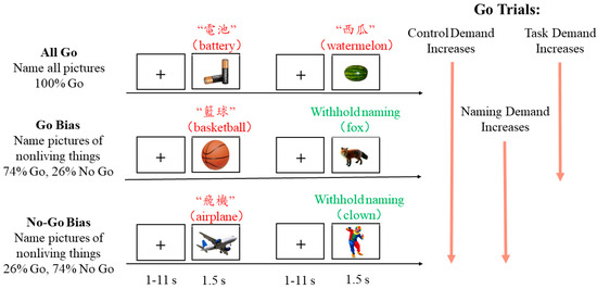 - Freund, M.; Gordon, B.; Nozari, N. Conflict-based regulation of control in language production. In Proceedings of the 38th Annual Conference of the Cognitive Science Society, Philadelphia, PA, USA, 10–13 August 2016. [Google Scholar]