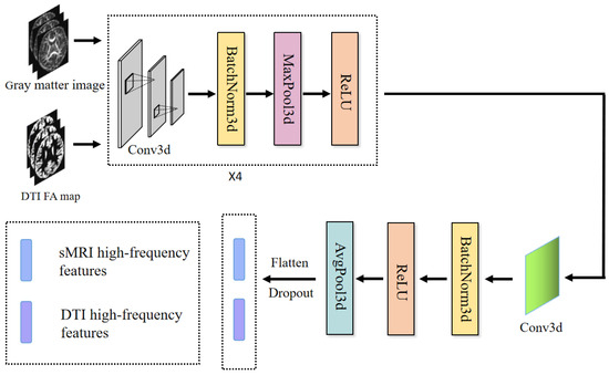 High-frequency information typically conveys localized details with rapidly changing characteristics, corresponding to changes on shorter spatial or temporal scales. This makes local subtleties and minute changes in the brain’s architecture easier to capture. In this module, we designed the meta-module, which was made up of SFCN to extract sMRI and FAM high-frequency features.