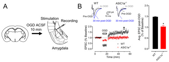 3.2. OGD (In Vitro Ischemia) Enhances ASIC1a–Dependent Synaptic Transmission in the Amygdala