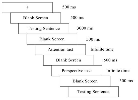 Therefore, this study attests to the psychological reality of Chinese deliberate metaphors from the reception side. Essentially, “when a speaker or writer uses a metaphor deliberately, that is, as a metaphor in order to make the addressee deliberately understand one thing in terms of something else, the sender forces the addressee to attend to the source domain as a domain that lies outside the current domain of discourse, and to view the target domain from that perspective” [12,13,14,15,16] (p. 54). This explanation depicts two aspects when the addressee understands a deliberate metaphor: attention to the source domain and adoption of the source domain’s perspective (indicated by underlining). Based on the definition and major tenets of deliberate metaphor, we propose two hypotheses about the reception process: Compared with non-deliberate metaphors, receivers pay more attention to deliberate metaphors and display a greater tendency to adopt their perspectives. At the same time, since response time can be taken as an index of the mental process because it decodes mental operation stages [17] (p. 152), we also hypothesize that receivers spend more time processing deliberate metaphors. Experimental results confirmed our hypotheses, verifying the psychological reality of Chinese deliberate metaphors from the reception side.